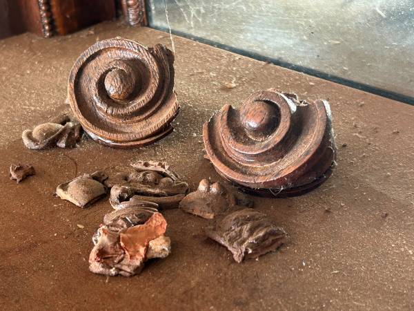 Large antique wooden mantel - great condition - Some small parts broken - pieces included You come and pick up.