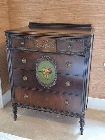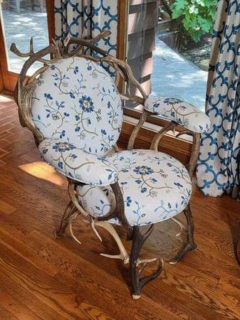 Antique Furniture & Decor — Chippendale and Regency pieces, Baker and Stickley furnishings, crystal, Persian rugs, and English silver.