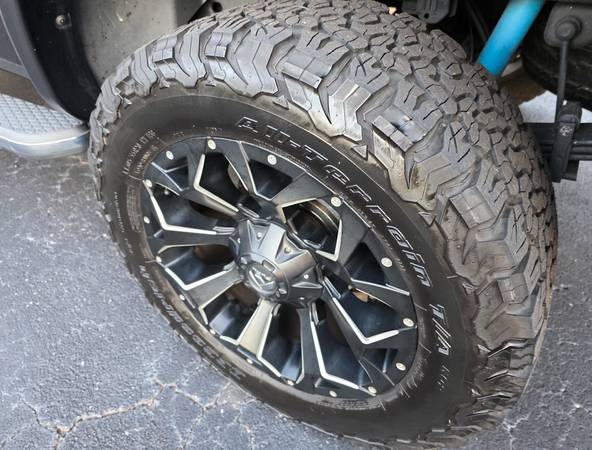 Features: power windows; power, heated and memory mirrors; Power, heated and memory seats; blind spot, front and rear sonar system, Bluetooth audio, Rockford Fosgate audio system, dual climate control, back-up camera with cross traffic, 7" touch screen navigation, towing mirror, front and rear LED lights, 20" rims with really good BF Goodrich tires, 2020 front grille & bumper conversion.