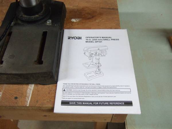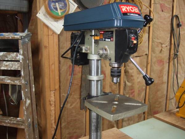 Ryobi variable speed 1/2"chuck drill press, very good condition. Includes stand and operating manual. No texts.