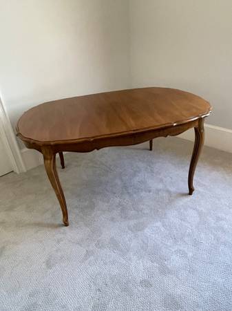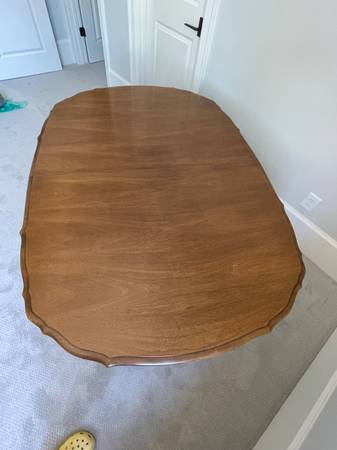 A lovely dining room table, approximately 60x42 inches, with three leaves (12 inches each). Made of real cherry wood and in excellent condition, it can be ready for your Thanksgiving dinner gathering! When leaves are in place the table extends to about 8 feet and easily seats eight to 10 diners. Available near Athens Academy (south of the Loop on 441). Yes, we could ask more for this table since it is in great condition, but we want it to sell quickly and go to a home where it will be appreciated as the piece of fine furniture it is.
