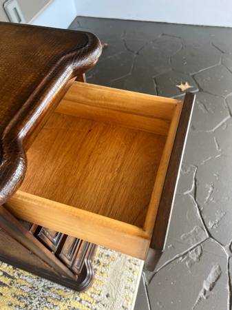 Larger bottom drawer has hanging file folder racks. . Solid wood