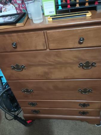 5 drawer maple dresser. Dovetail joints. Very good condition.