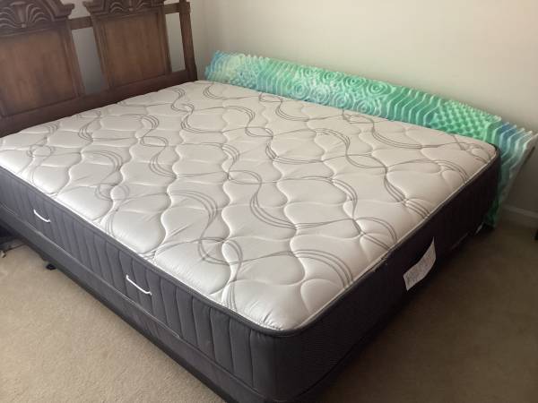 Includes mattress, low box spring, foam pad Frame and headboard $175.00. OBO No stains, very clean, like new Only 2 years old Excellent condition Call if interested