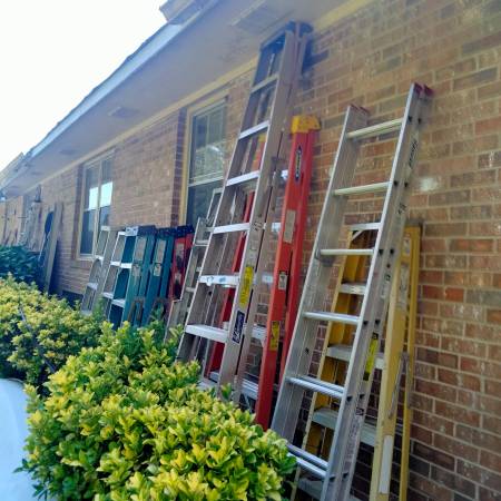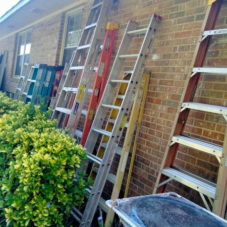 16 ft Werner sluminum extension ladder+$90. ,24 ft aluminum extension ladder -180. 24 ft fiberglass extension ladder -$215. 28 ft extension ladder w hooks and more -$265. Se real stepladders -6 ft, 8 ft, 10 ft, both aluminum and fiberglass. $50 and more. Calls are best.