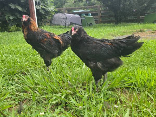 Young healthy clean 3 month old roosters. Raised together. These guys have been vaccinated and fed kalmbaugh feeds. Sire is a skip bittner copper maran rooster. They are from green egg americauna hens. Nice quality not from hatchery birds. Add some color your flocks eggs. $15 each or both for $25. Their color will change and become more colorful when older.