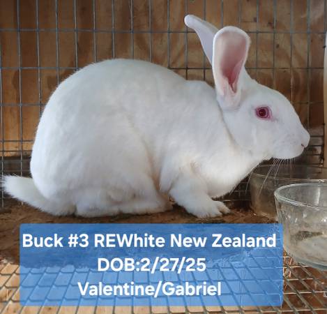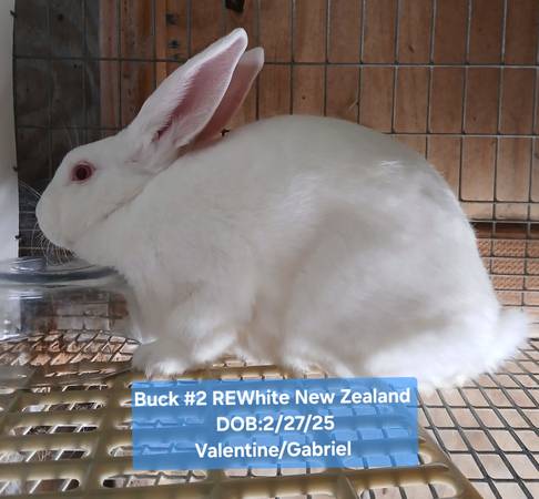New Zealand Young Breeders. Colors: Black & White Doe; Ruby Eyed white bucks and red doe from different bloodlines. These rabbits come from beautiful New Zealand parents; some which are registered, and bloodlines are of show worthy quality. I have over 40 years of showing and raising top quality New Zealand rabbits. Each rabbit will be a great addition to your breeding program. My breeding program also produces top dressed meat weight at 12-14 weeks. My rabbits are fed all natural feed and supplements. Raised in clean all wire cages above the ground for cleanliness and safety. PRICING: Young bucks & does $35 each. Top breeder does $45 to $50 each. **CASH ONLY & EXACT CHANGE PLEASE.** NO DELIVERIES. Serious inquiries only. THANK YOU FOR YOUR INTEREST. JPORTER.