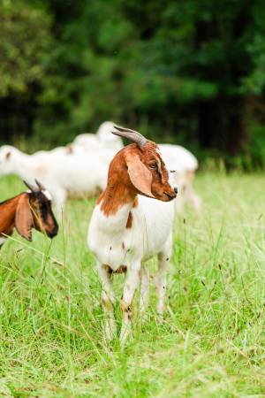 She is a 1-year-old Boer cross doe. She is fully trained to electric netting.