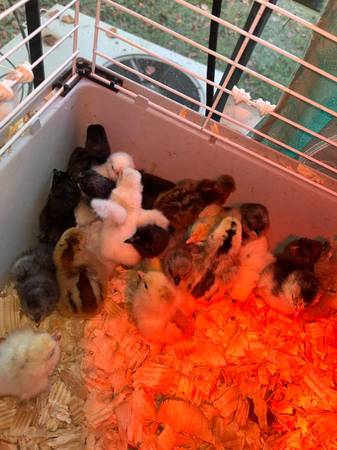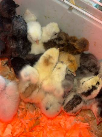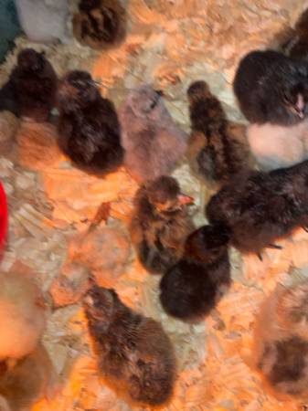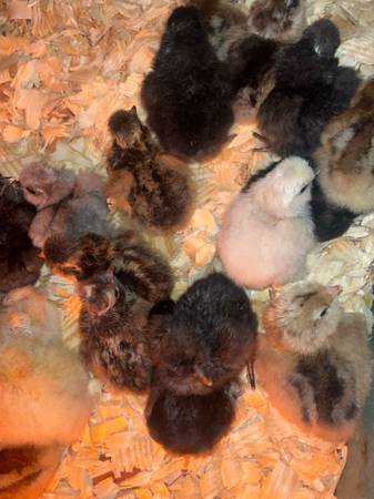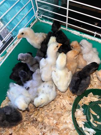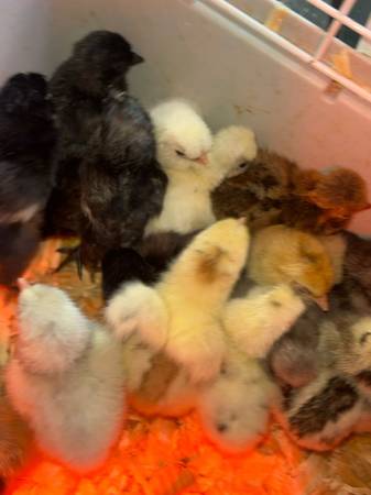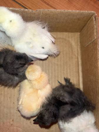 Chicks, straight run bearded Silkies, Cochin/frizzle, ayam cemani, polish/ frizzle, Americana, Turken and royal palm turkeys all straight run Hoschton ga text for more information