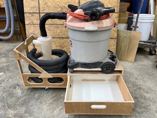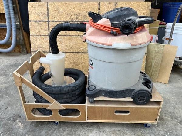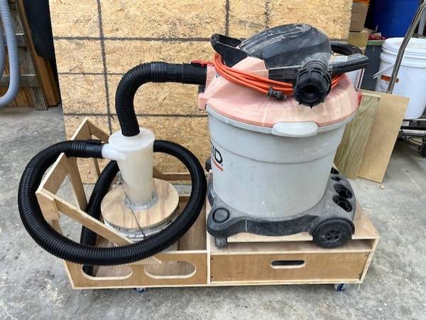Ridgid shop vac with dust deputy on rolling cart. Great for portable dust collection in your shop. I have an extra brand new pleated filter for the shop vac. Pick up in Danielsville, or can meet you between Danielsville and East Athens. The long 20' hose that is coiled up around the bucket DOES NOT go with this sale. The 7' hose and short hose between shopvac and dust deputy DOES go with the sale.