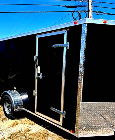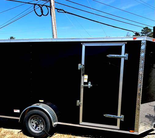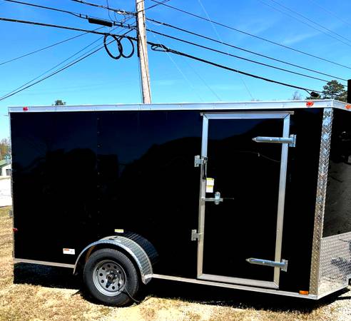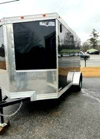 Black Cargo Trailer is Brand New, 6 x 12 ft with Upgraded .080 Exterior Metal, Semi-Screwless, Side Door and Back Door with Ramp. $3650. Ready to go now in Loganville GA!